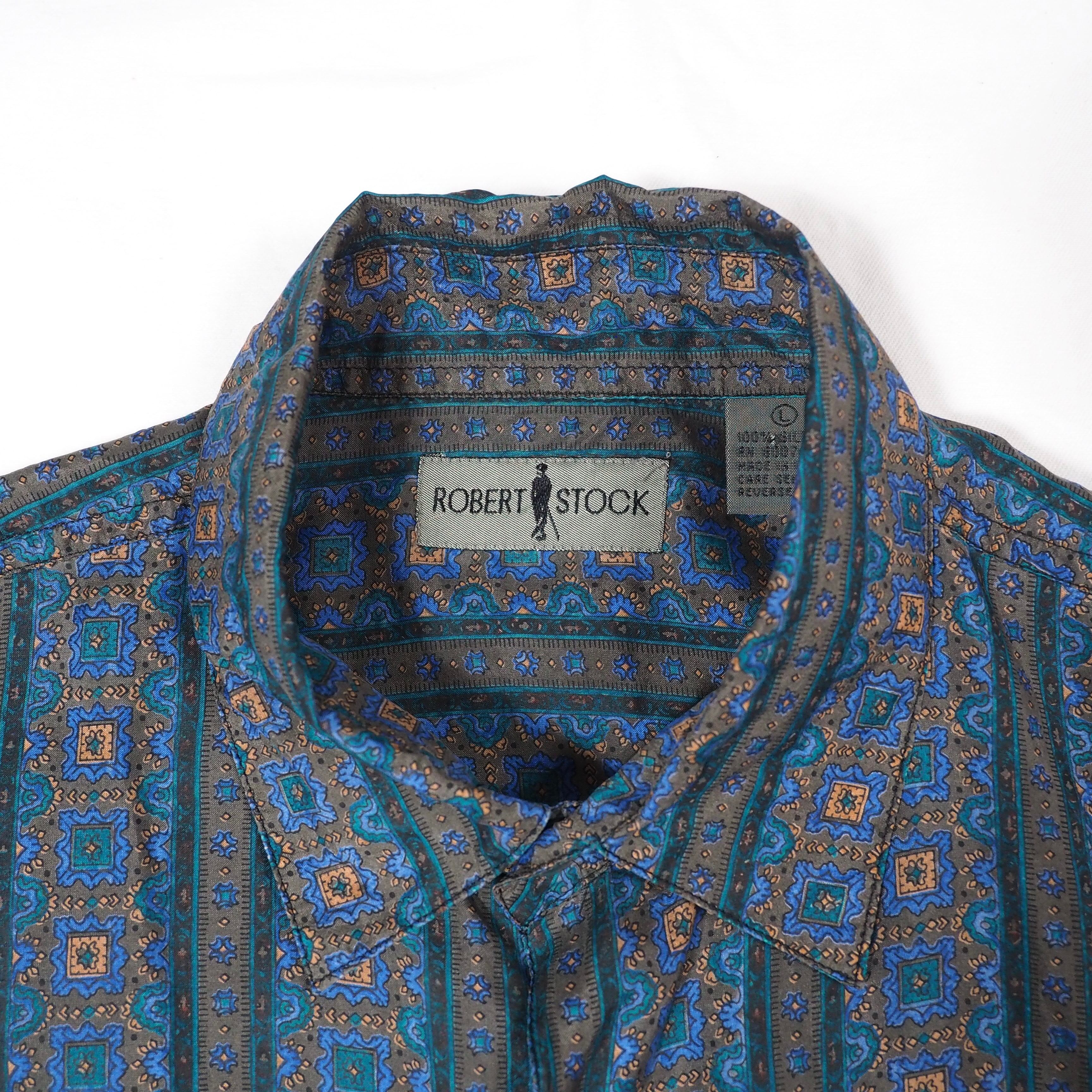ROBERT STOCK silk side bents s/s shirt L /ロバートストック シルク サイドベンツ 半袖シャツ 総柄