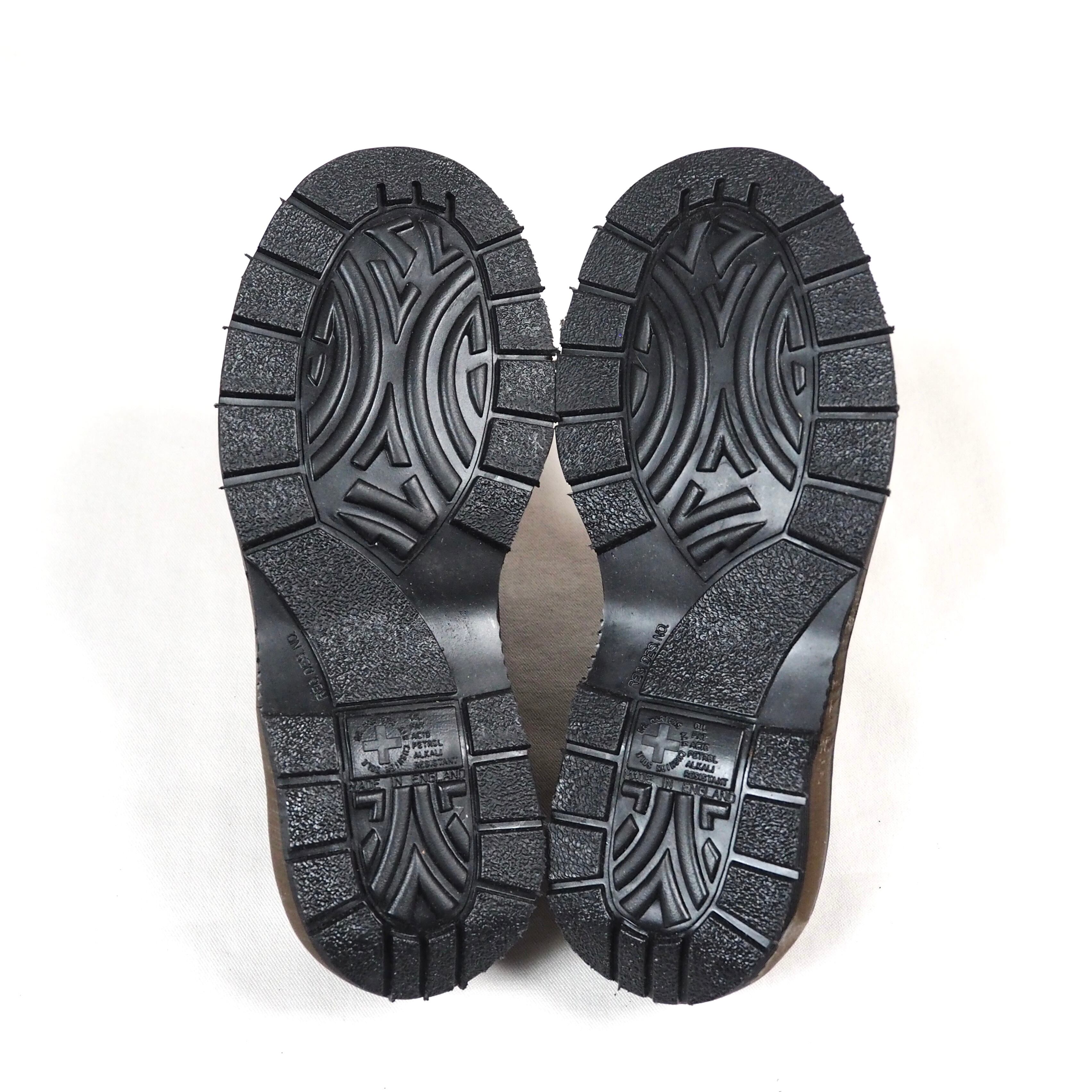 定番の3アイレットオックスフォードよりもっと無骨でデザインはワークブーツに近いアッパー、それでいて踵のないミュールタイプのレザーシューズ。