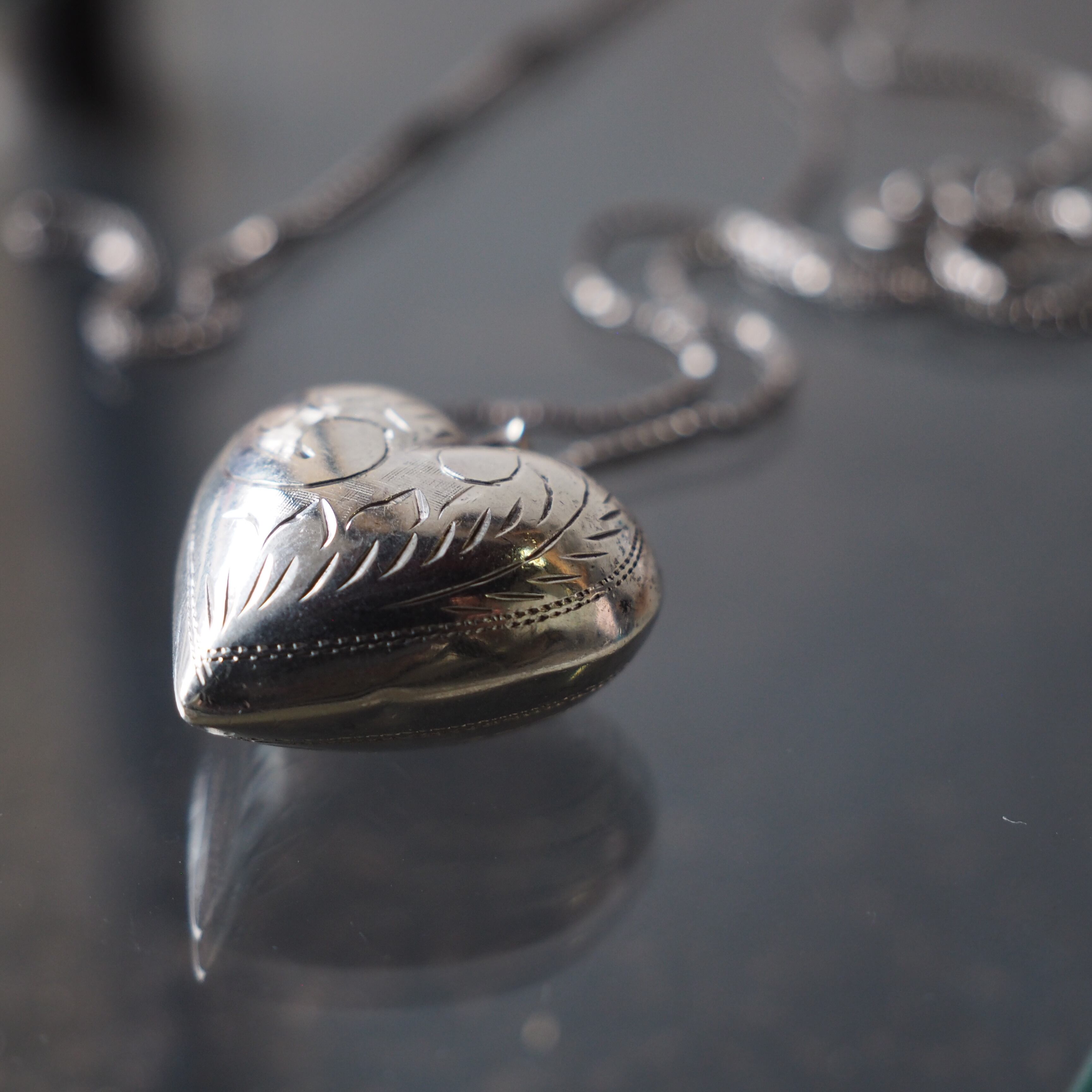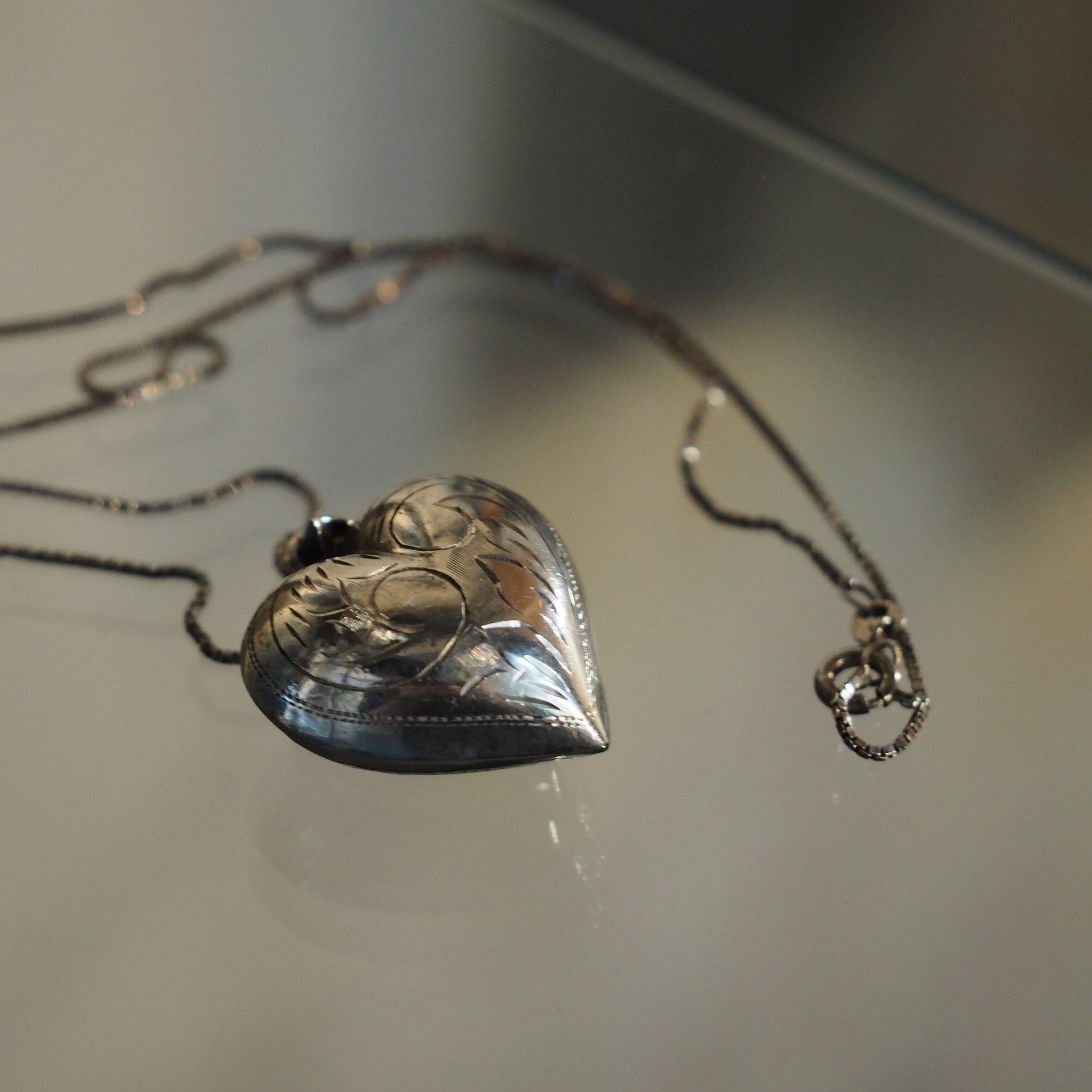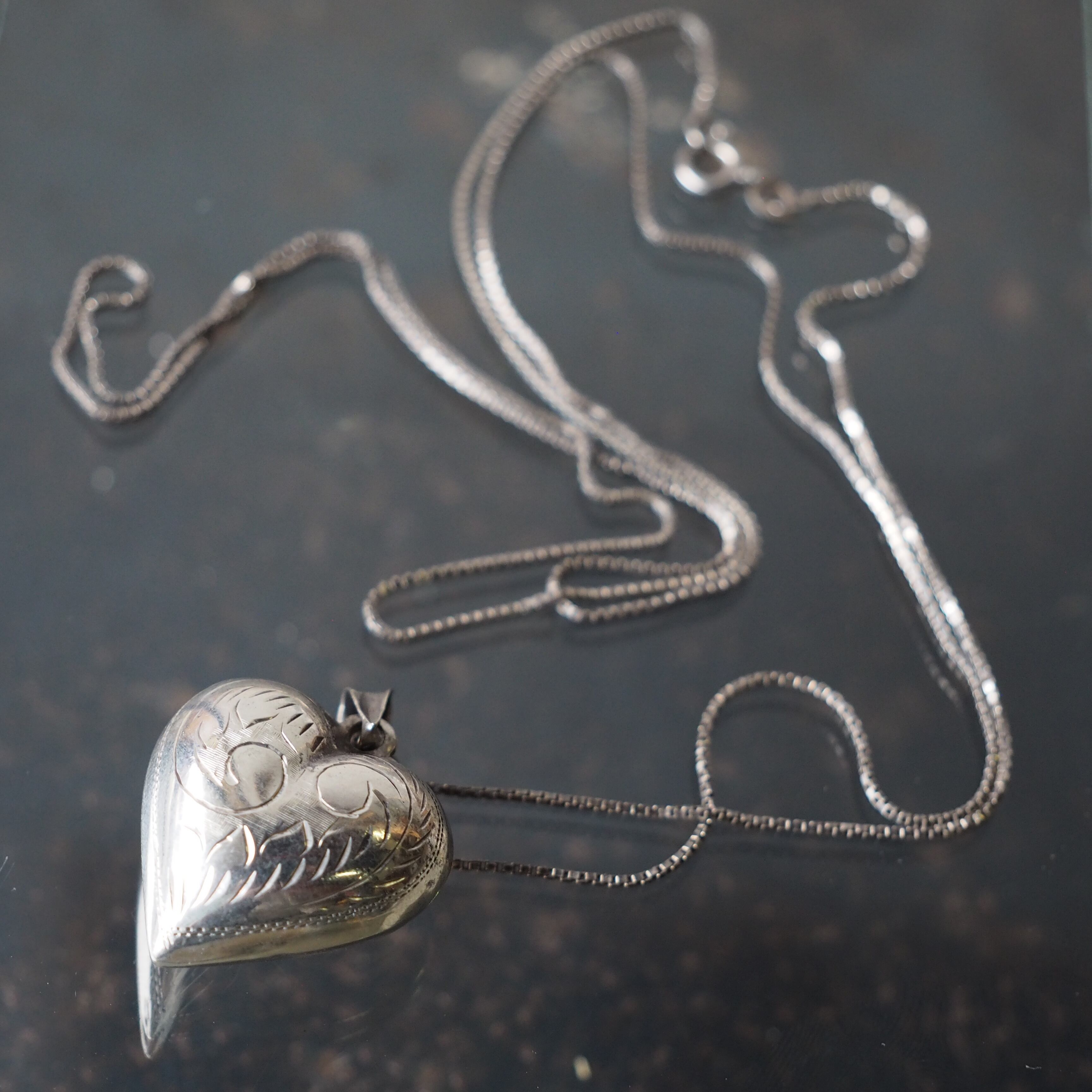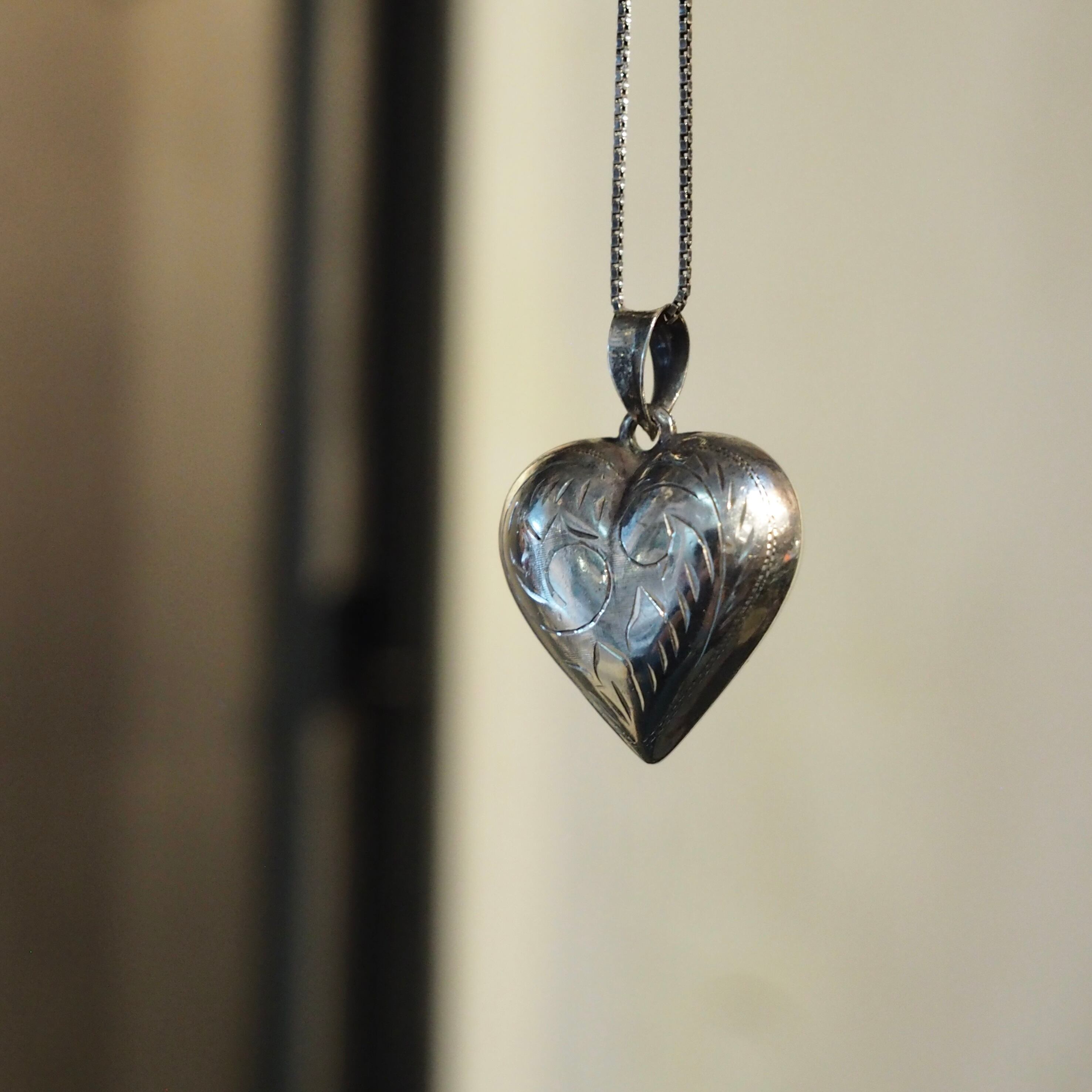 Carved puffy heart necklace silver 925 Italy パフィーハート ベネチアンチェーン ネックレス