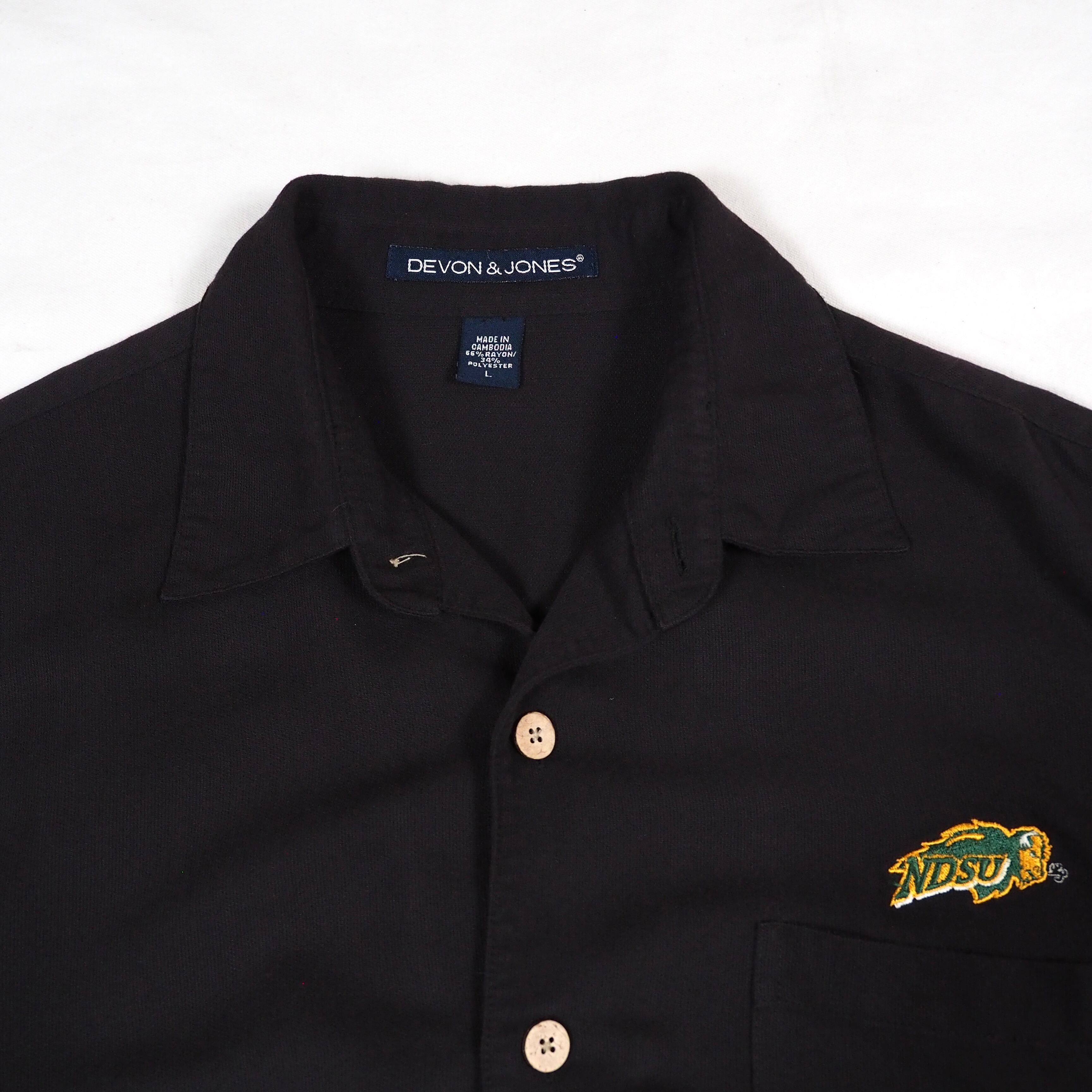 NDSU college logo embroidered S/S shirt rayon/black カレッジ刺繍 レーヨン半袖シャツ