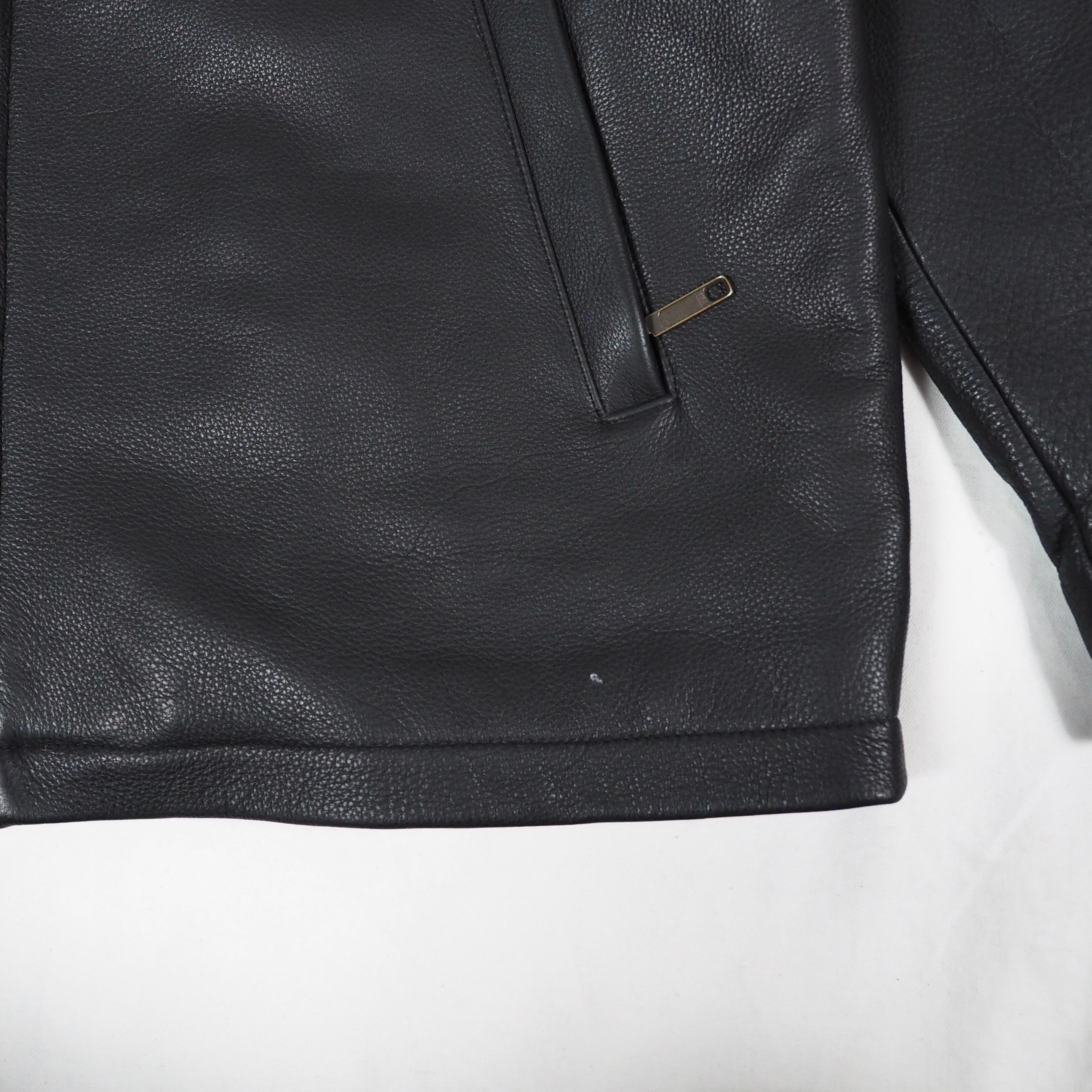 シボの入った厚手の生地で前立て裏はブラウンのレザーを使用。