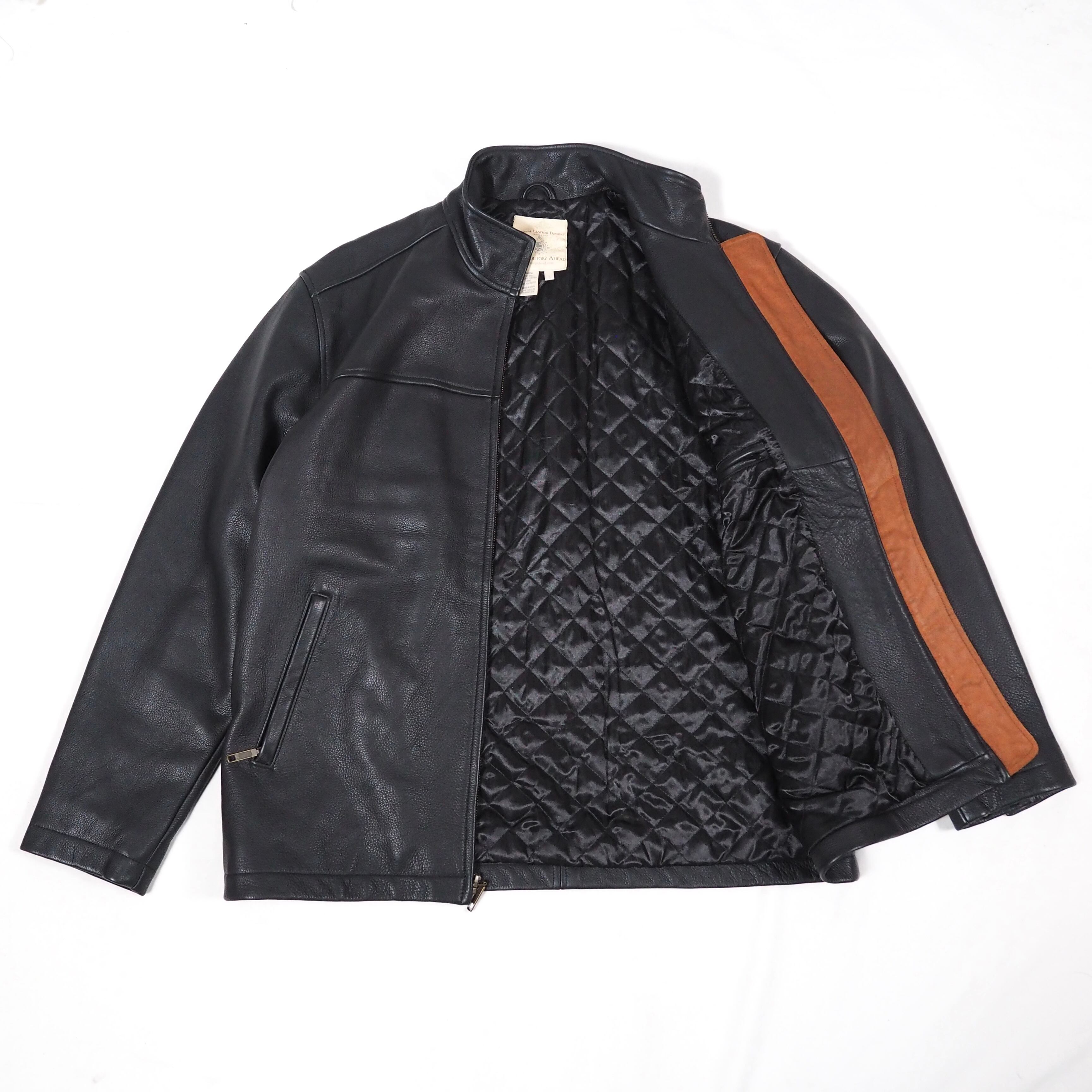 THE TERRITORY AHEAD zip up leather jacket L /black レザージャケット ブラック