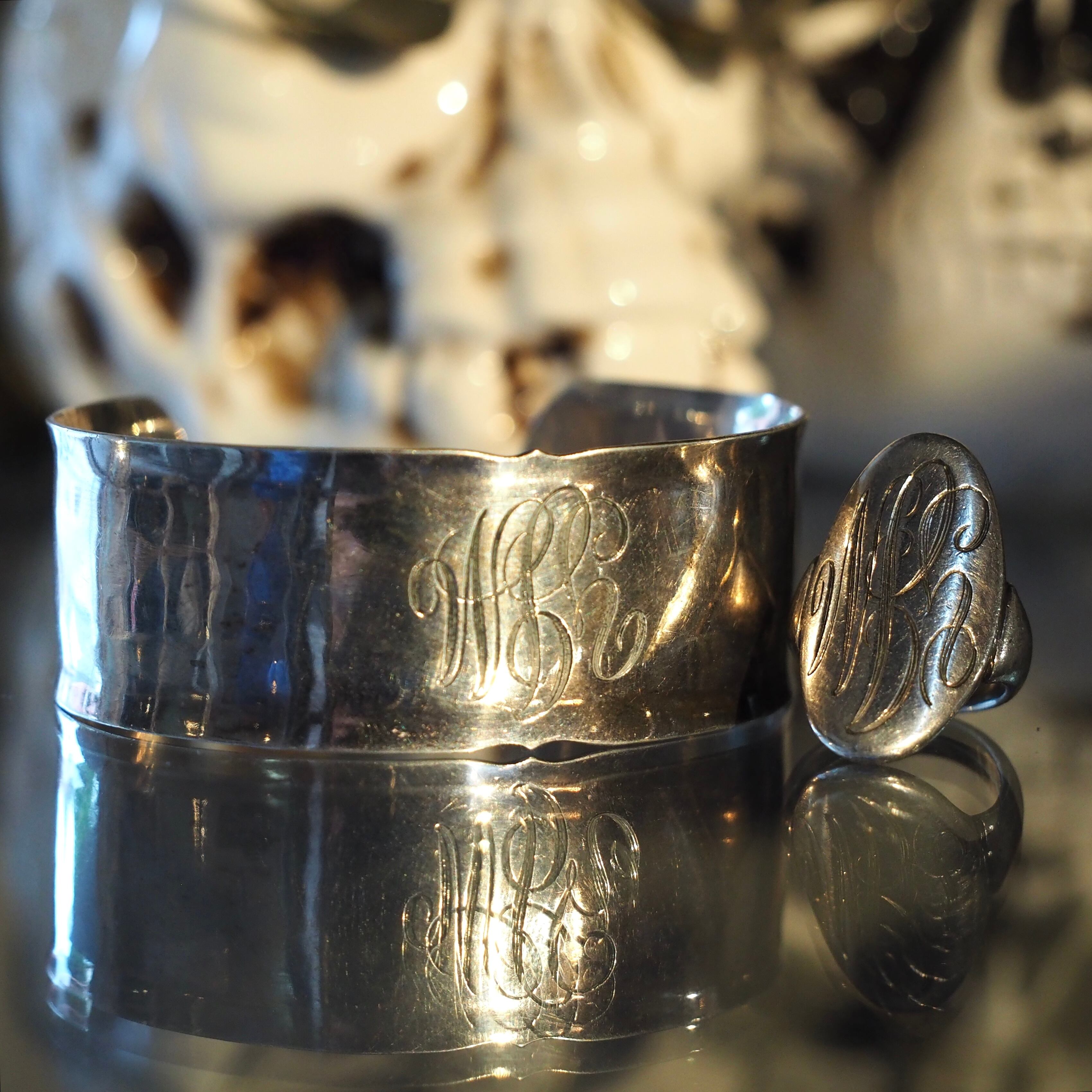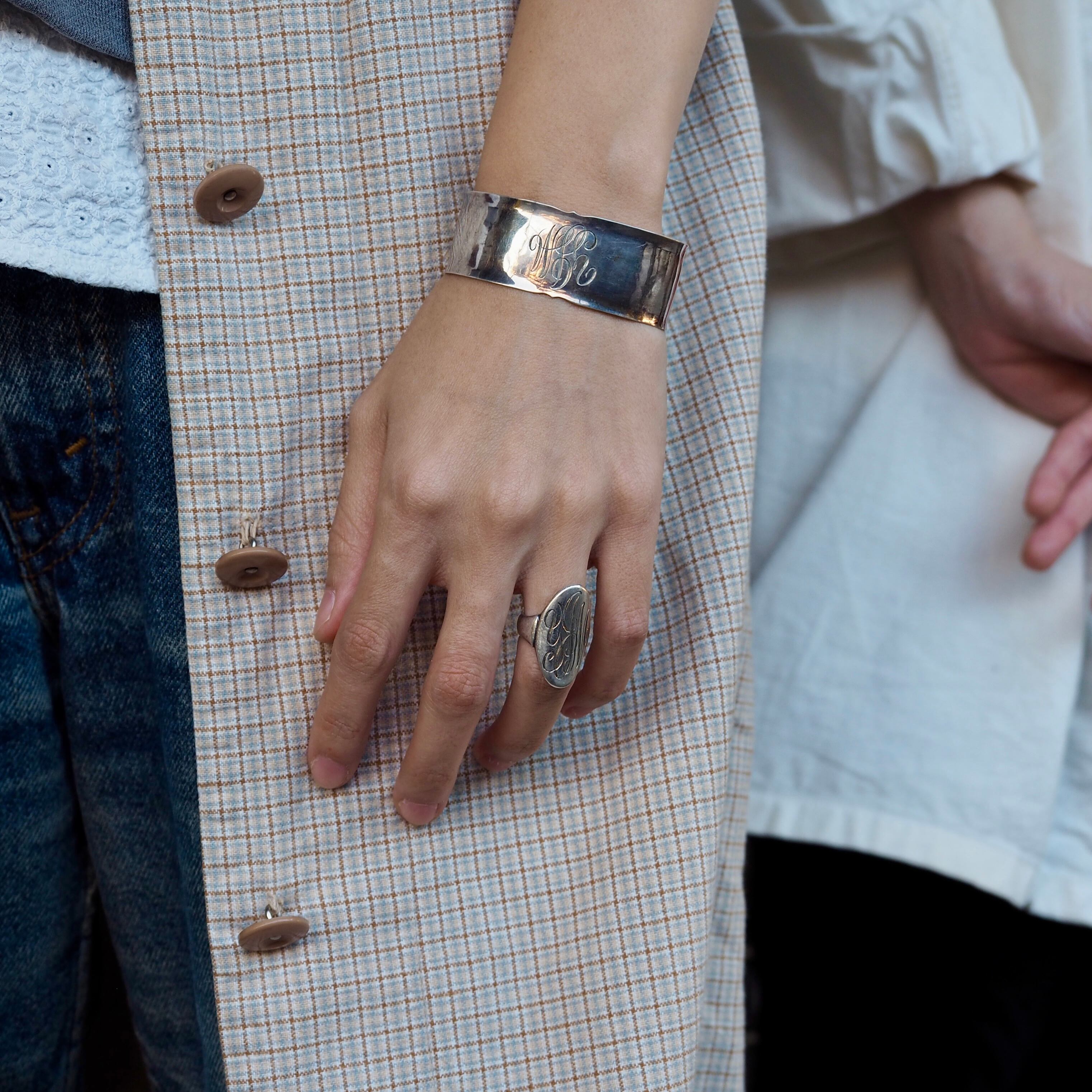 Turcotte handwrought monogram silver bangle and oval ring 60's ビンテージ スターリングシルバー バングル