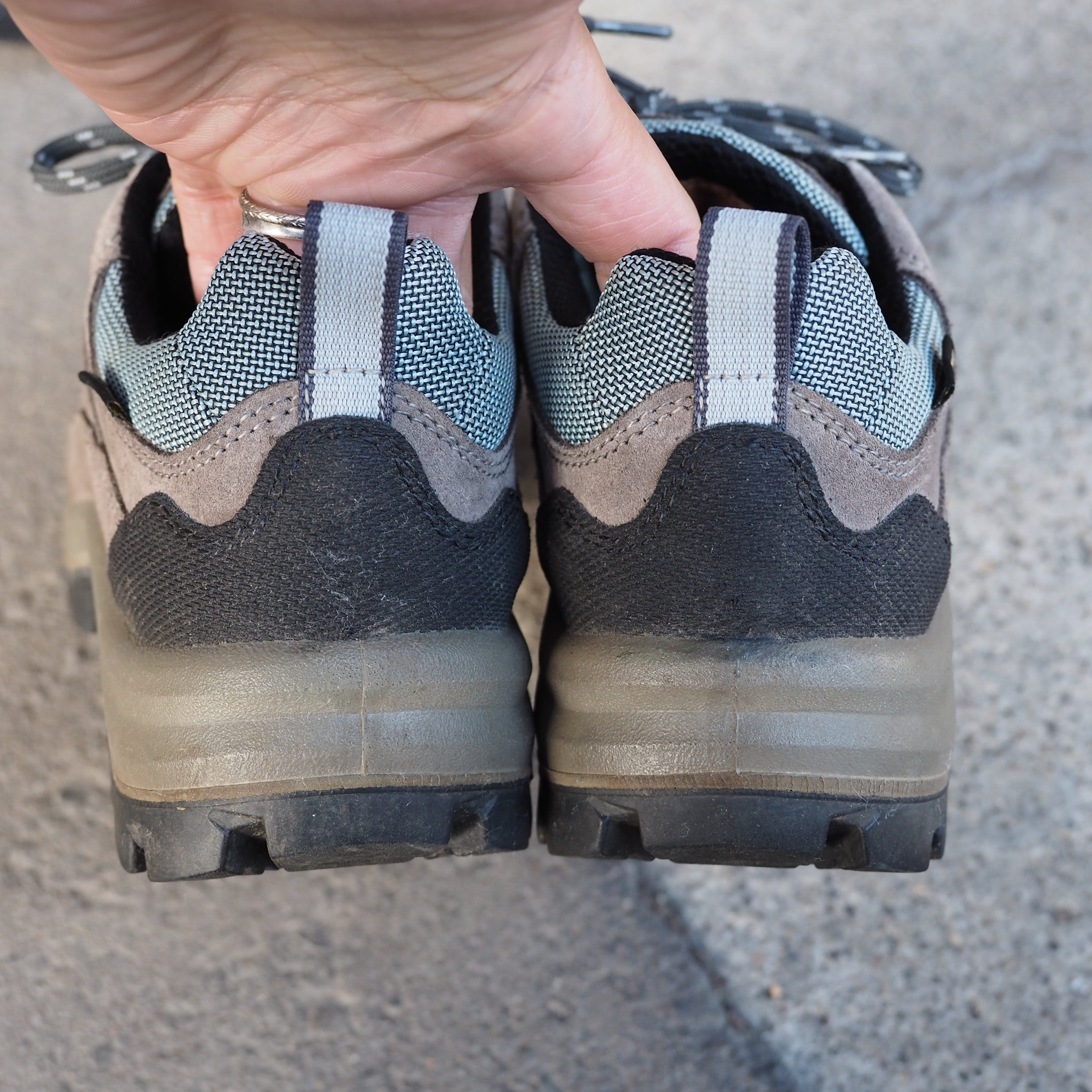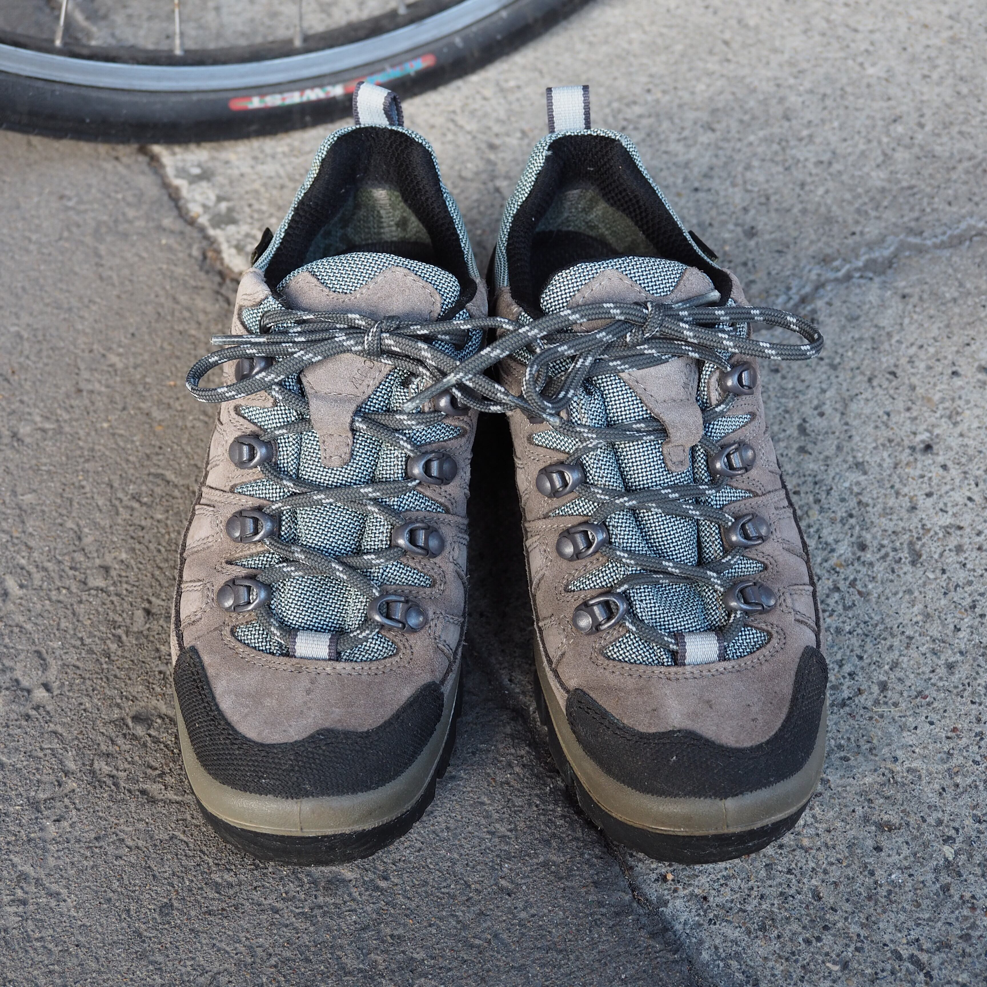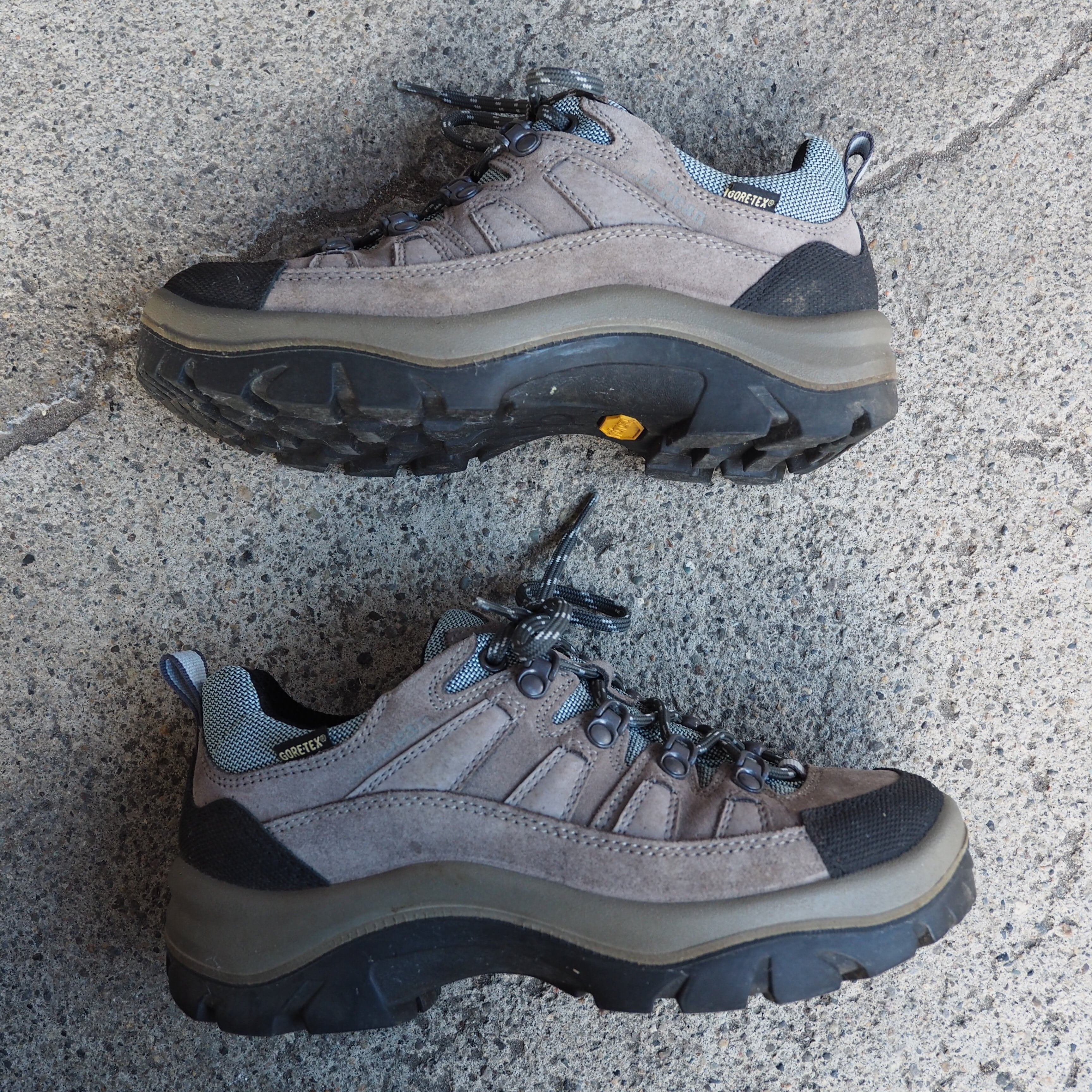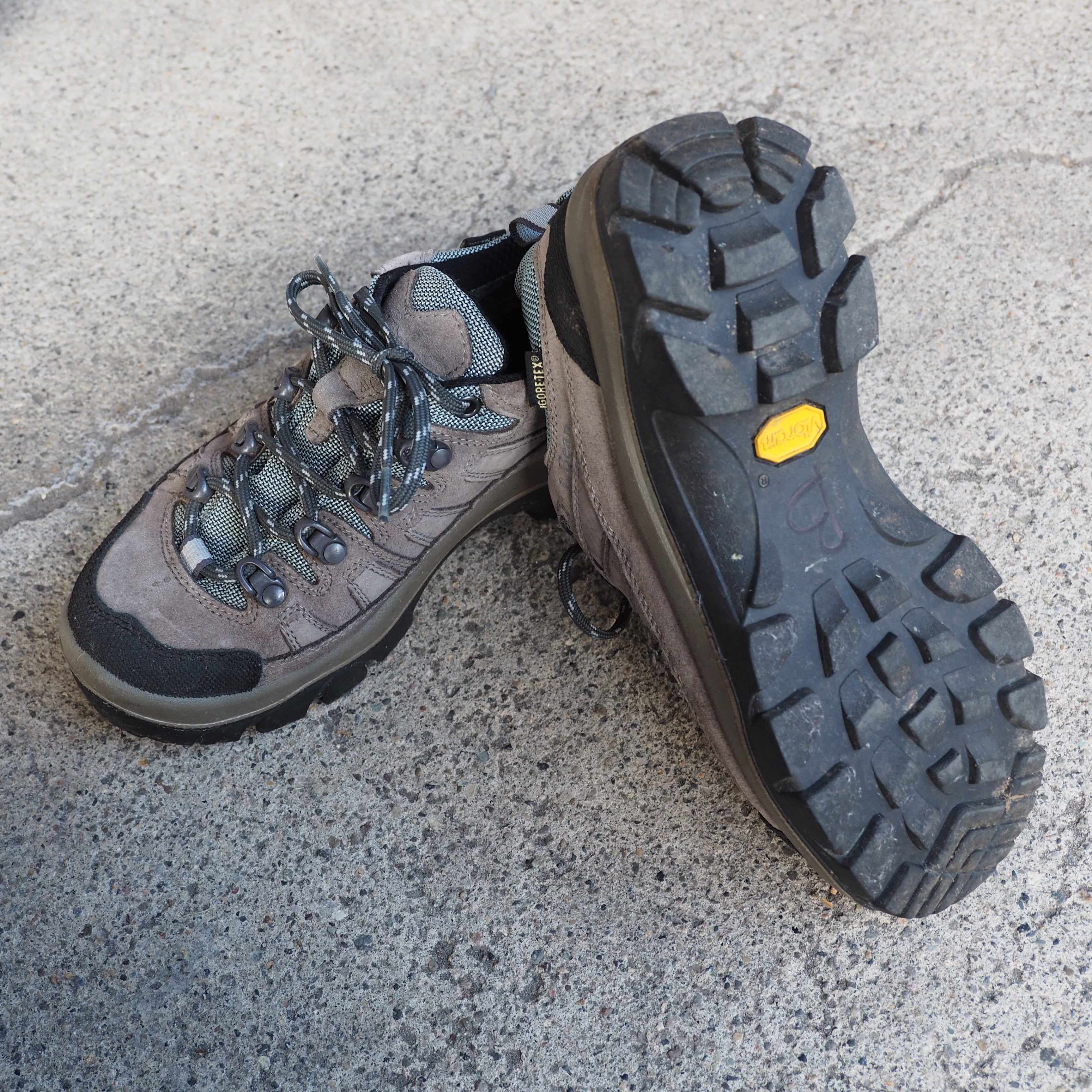 グレーアッパーにグレーのミッドソール、ゴツゴツとしたVibramのアウトソール。