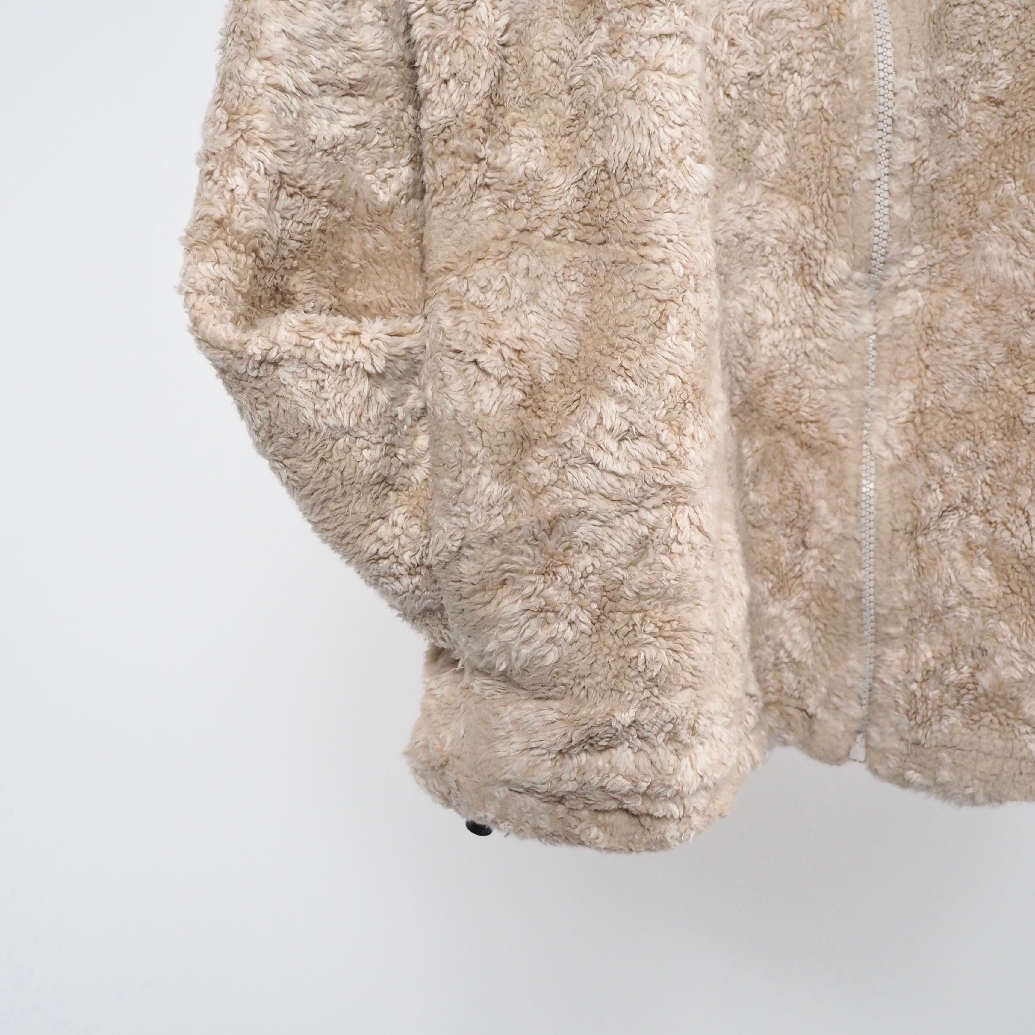 長い毛足と色合いが犬の毛並みのようなもふもふのフリース。