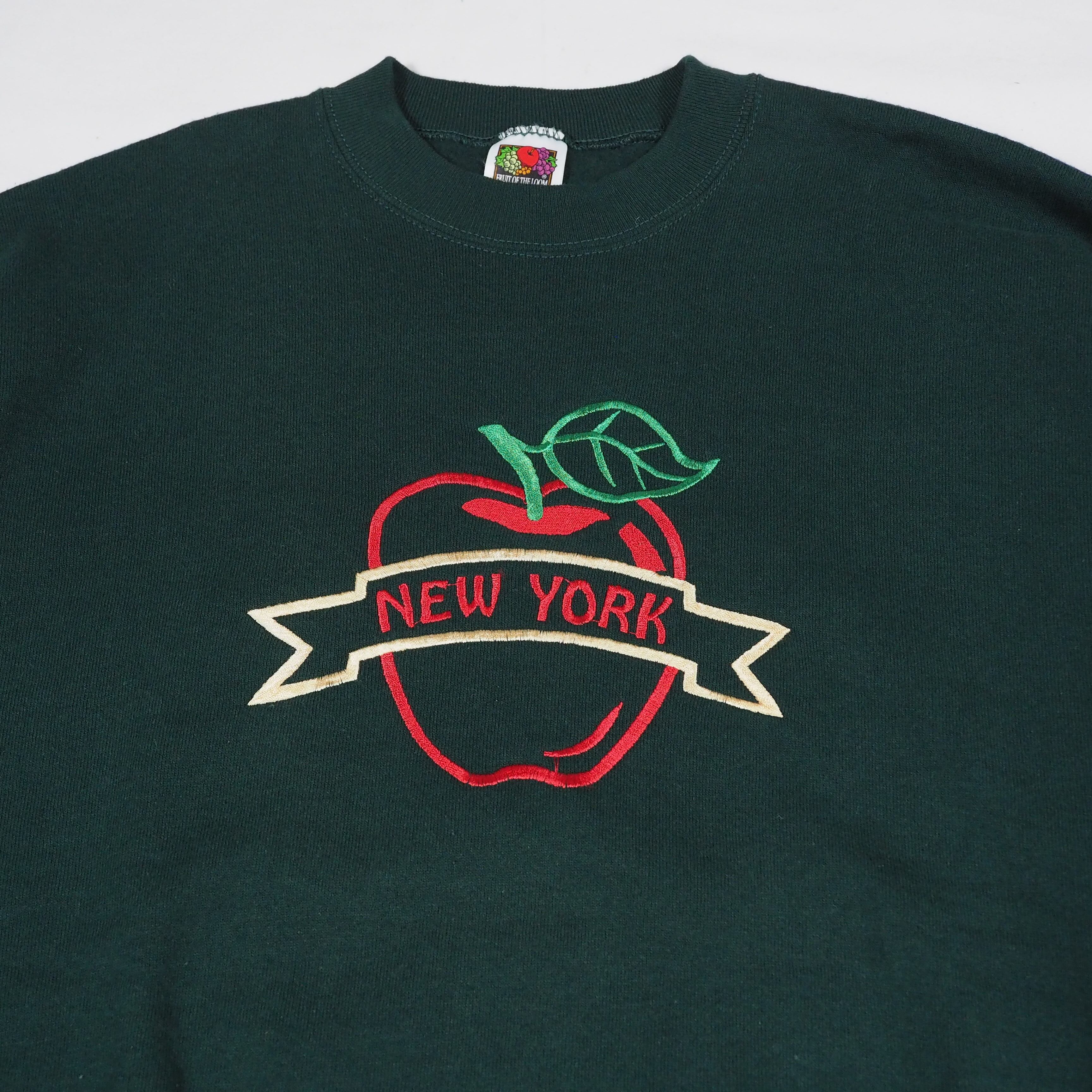 NEW YORK big apple embroidered sweatshirt XL FRUIT OF THE LOOM green ニューヨーク スーベニア スウェット