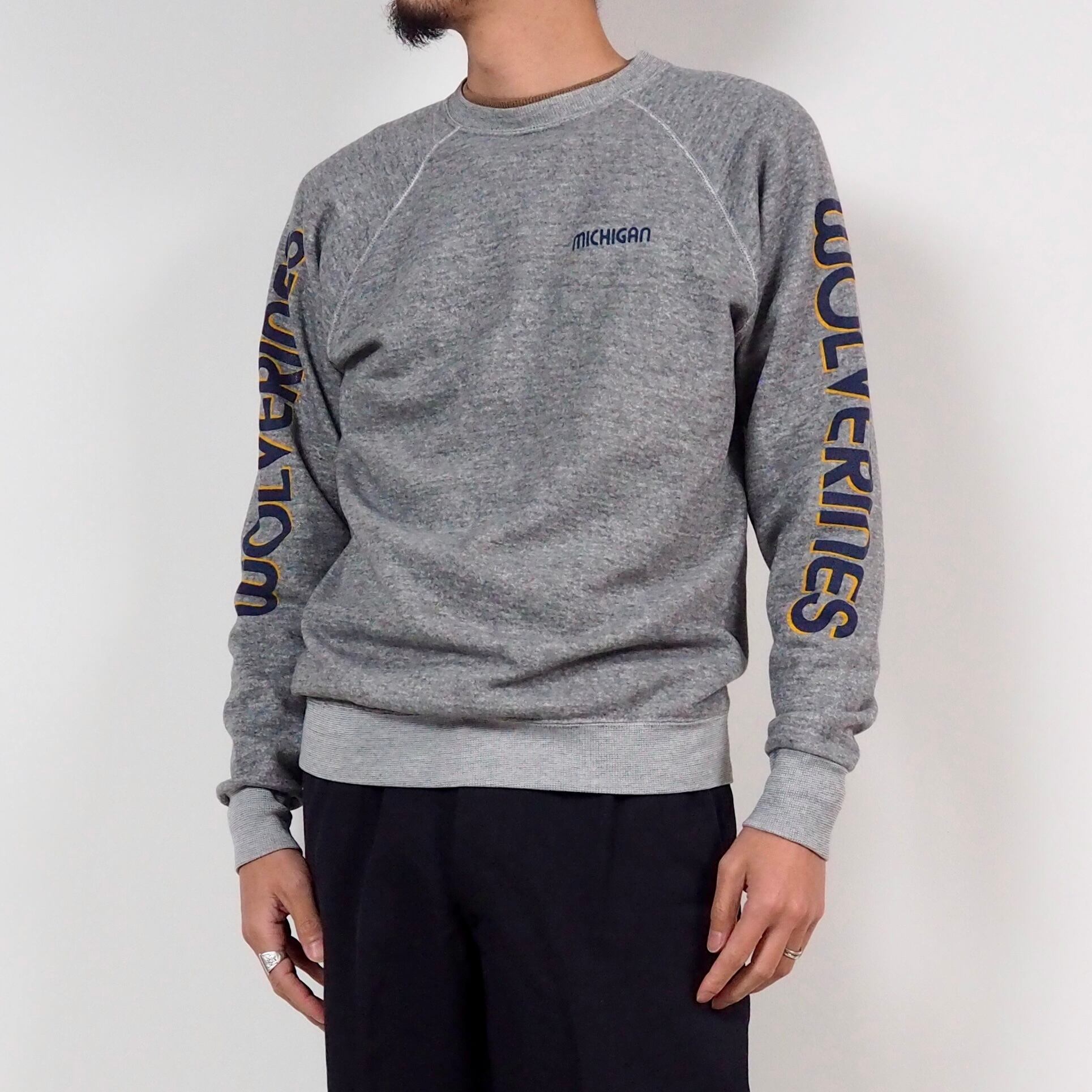 80’s MICHIGAN WOLVERINES sweatshirt L gray ARTEX USA製 スウェット グレー杢