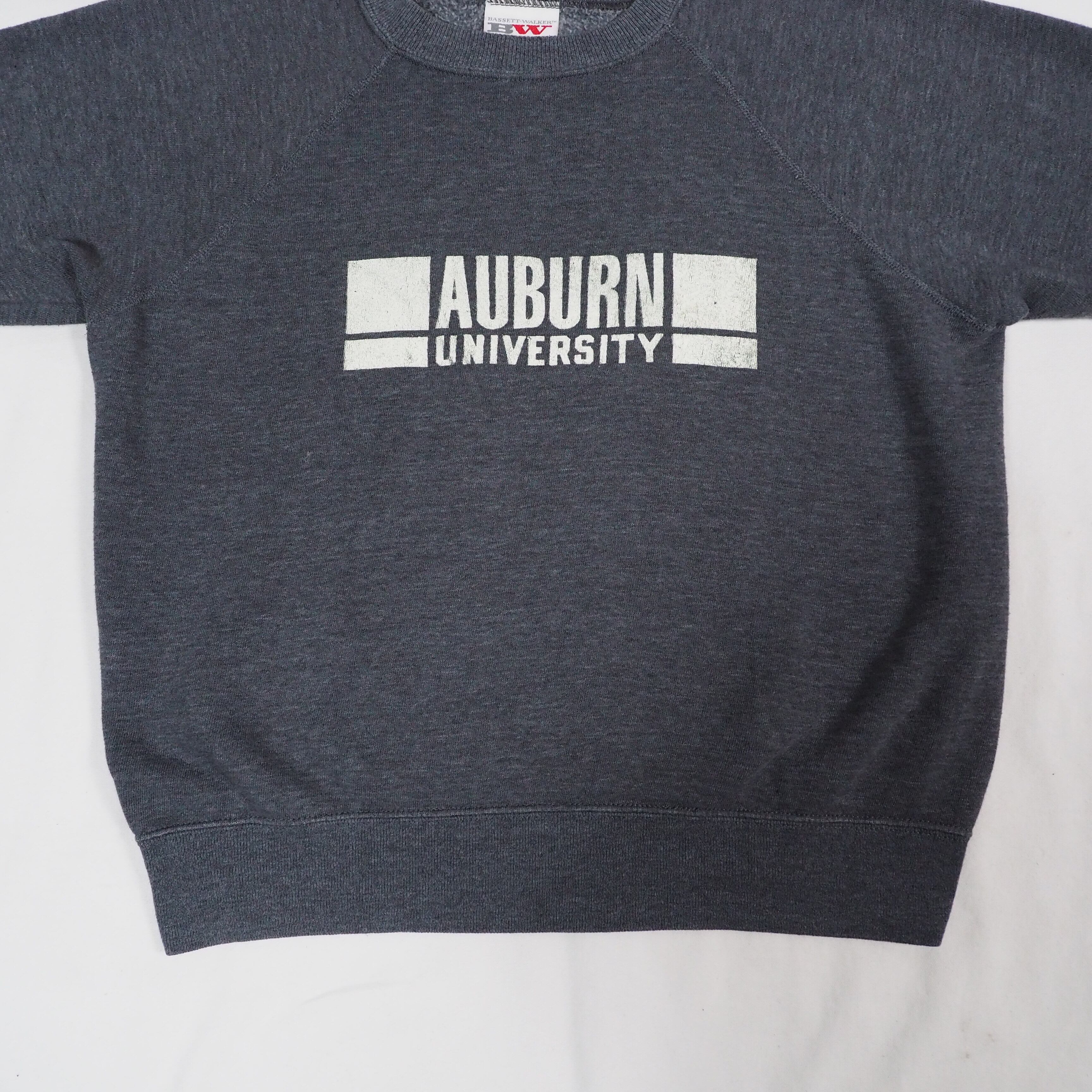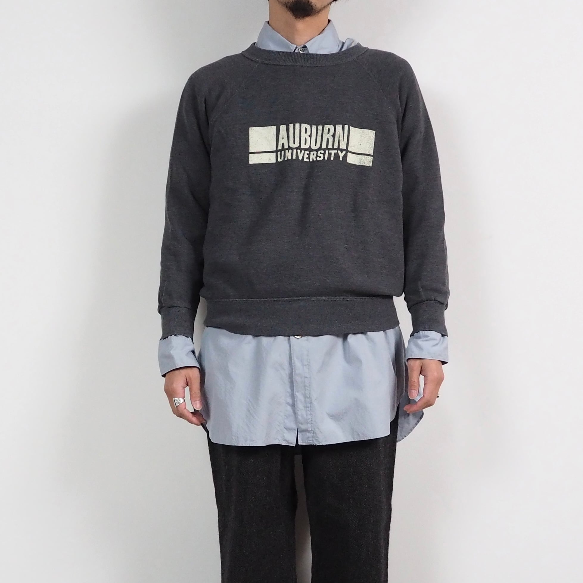 80’s Collage print raglan sweatshirt L USA製 BASSETT WALKER カレッジスウェット グレー