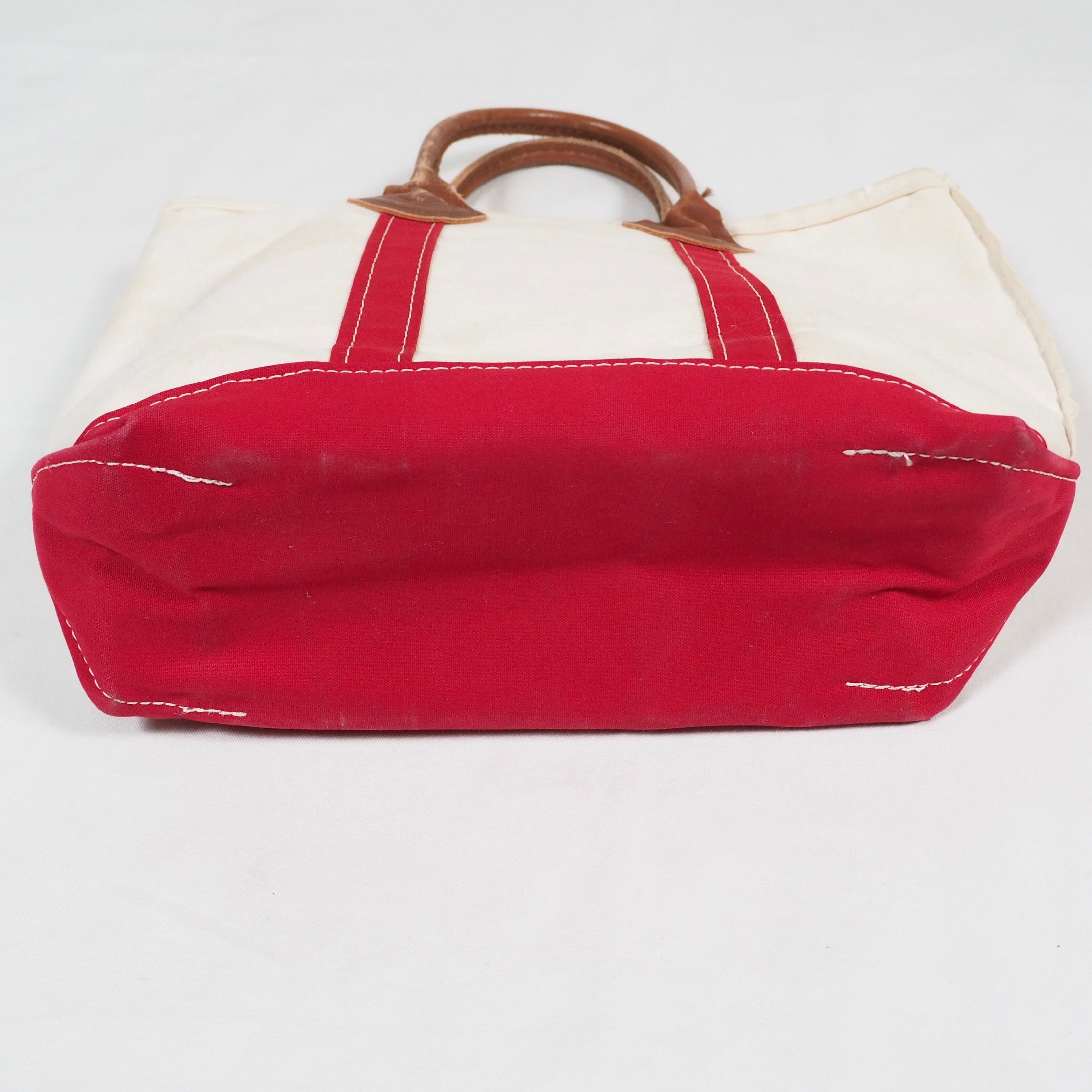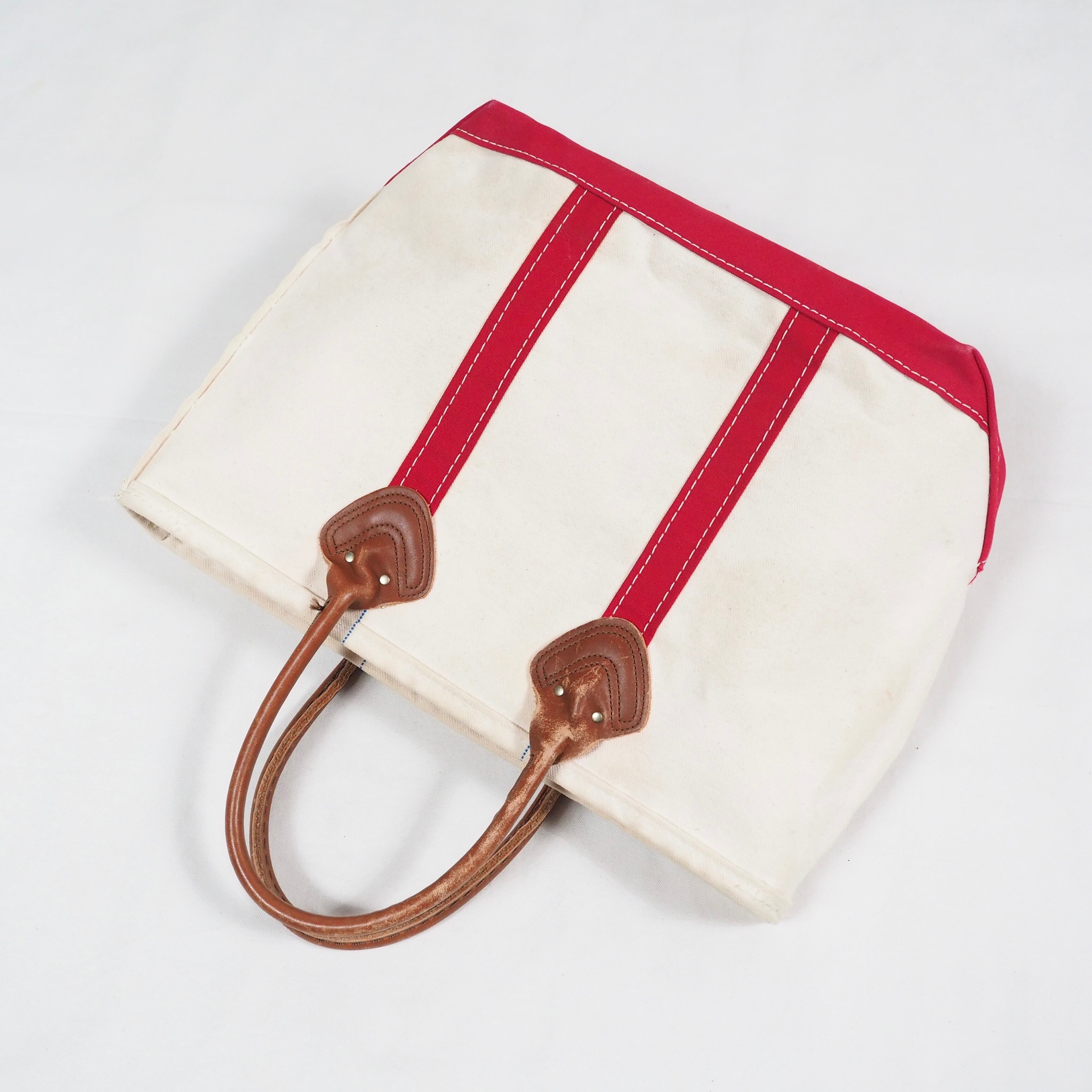 L.L.Bean leather handle canvas tote bag white/red BOAT&TOTE 80’s USA製 LLビーン キャンバス トートバッグ