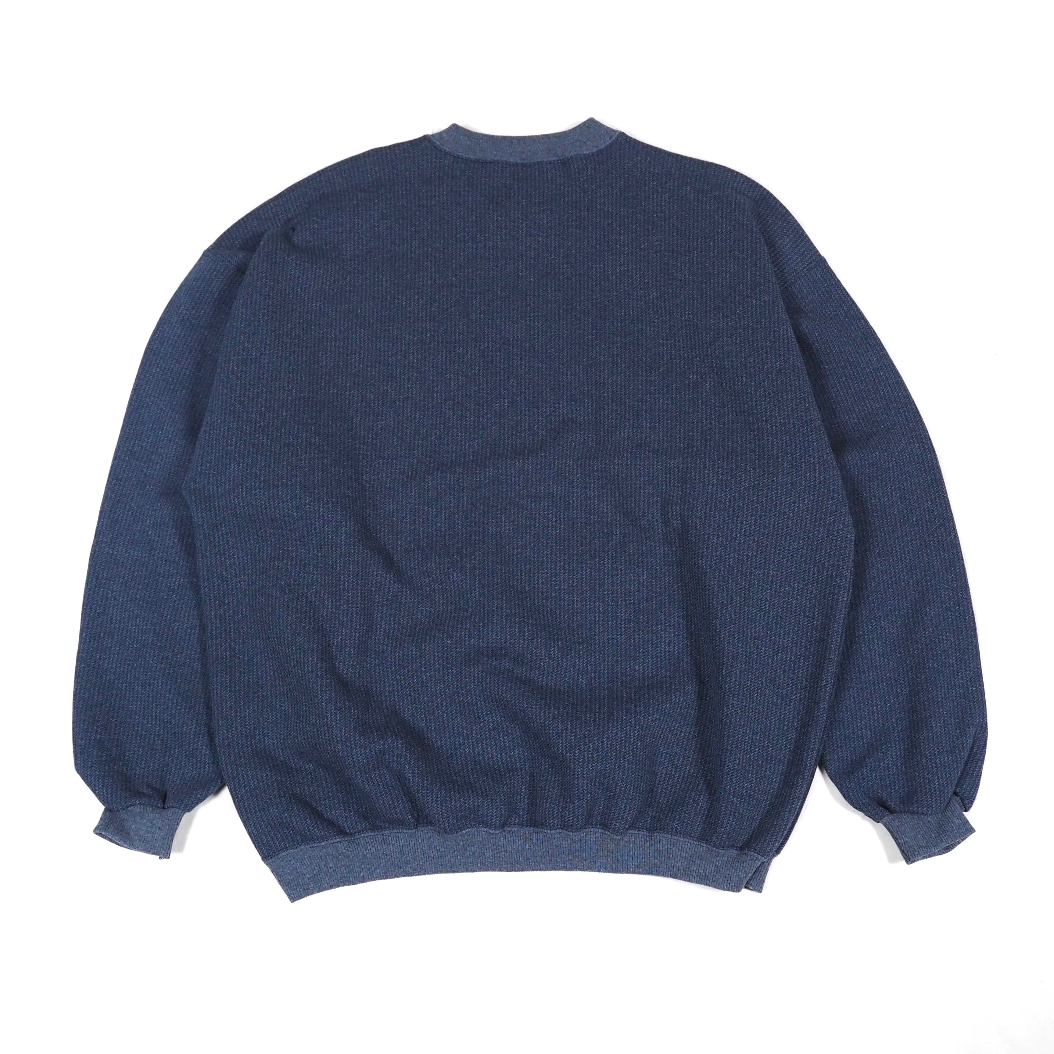ストライプのように見える珍しい編み、リブと色味の異なる2トーン仕様。