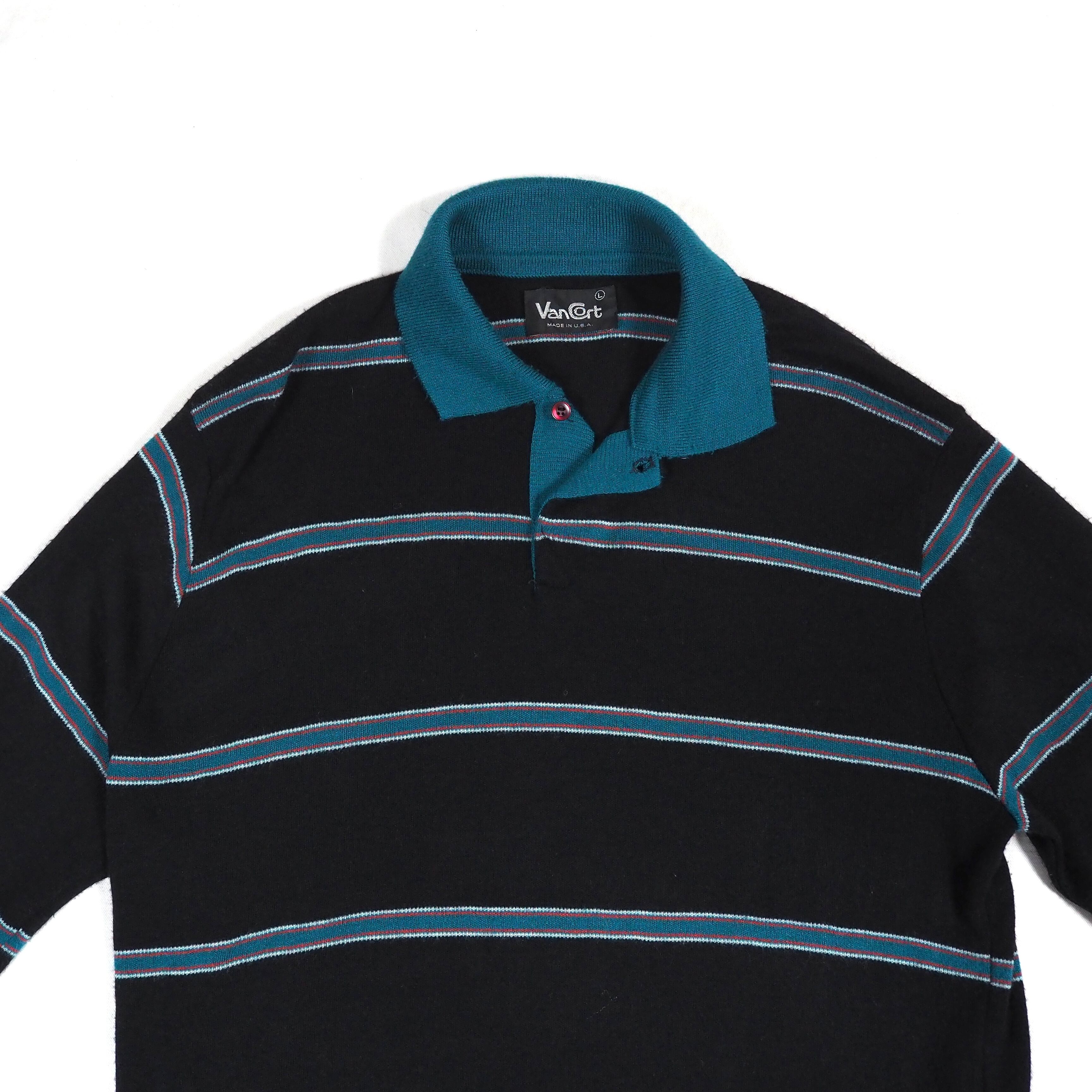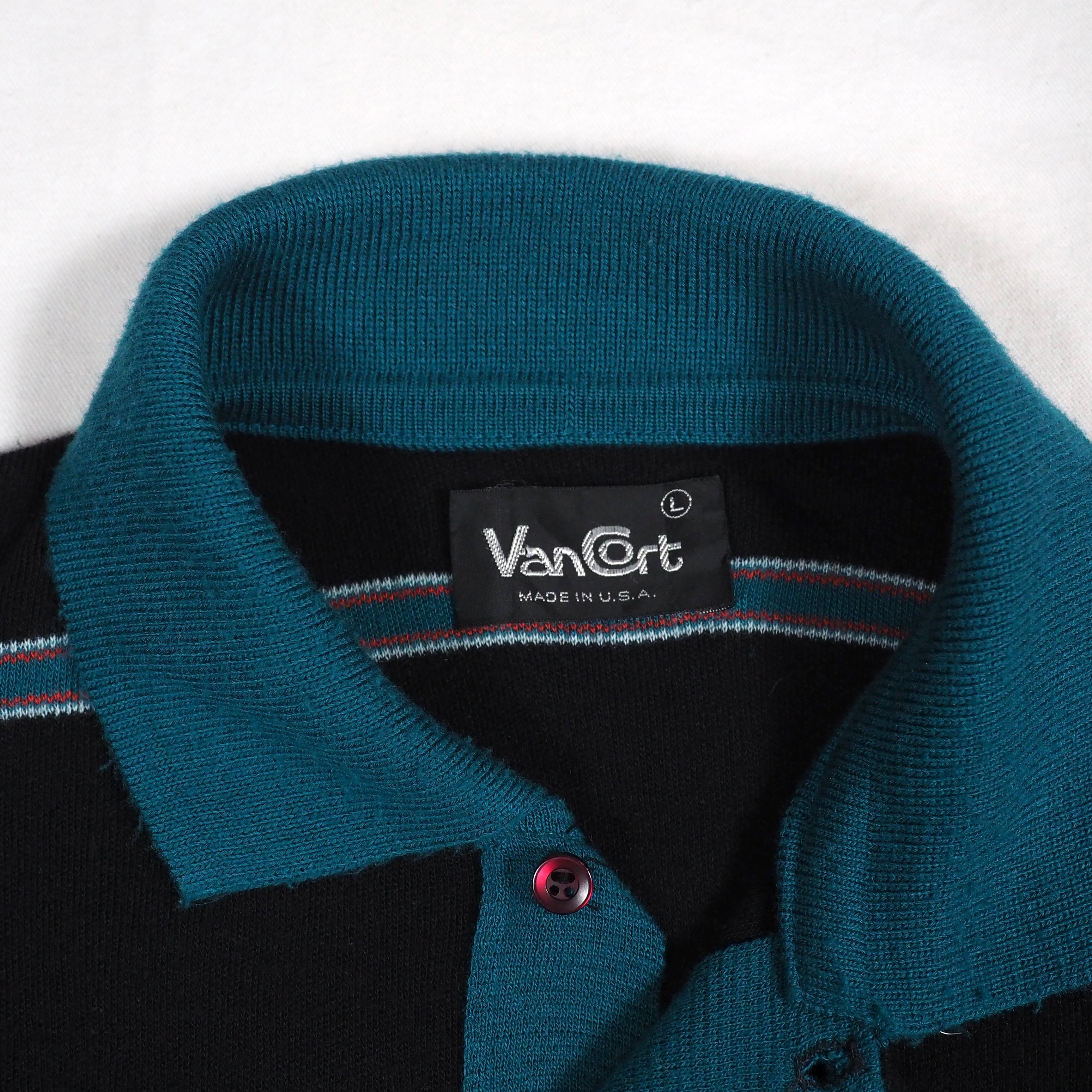 80’s Van Cort Knit Polo Shirt L USA製 ニットポロ 長袖シャツ