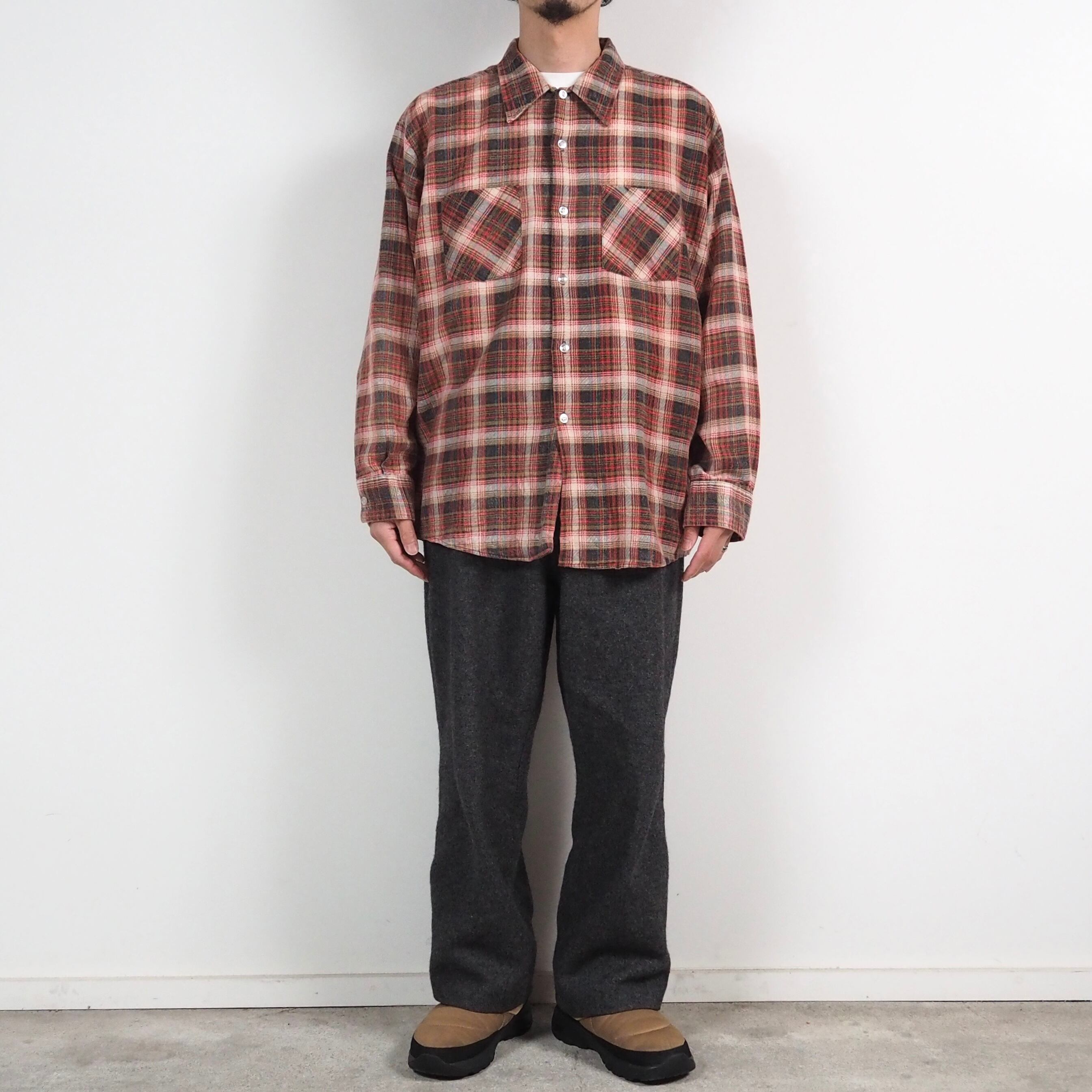 一目でわかるオールドらしい色合いのチェック柄、裾のラウンドも緩く着やすいシルエット。